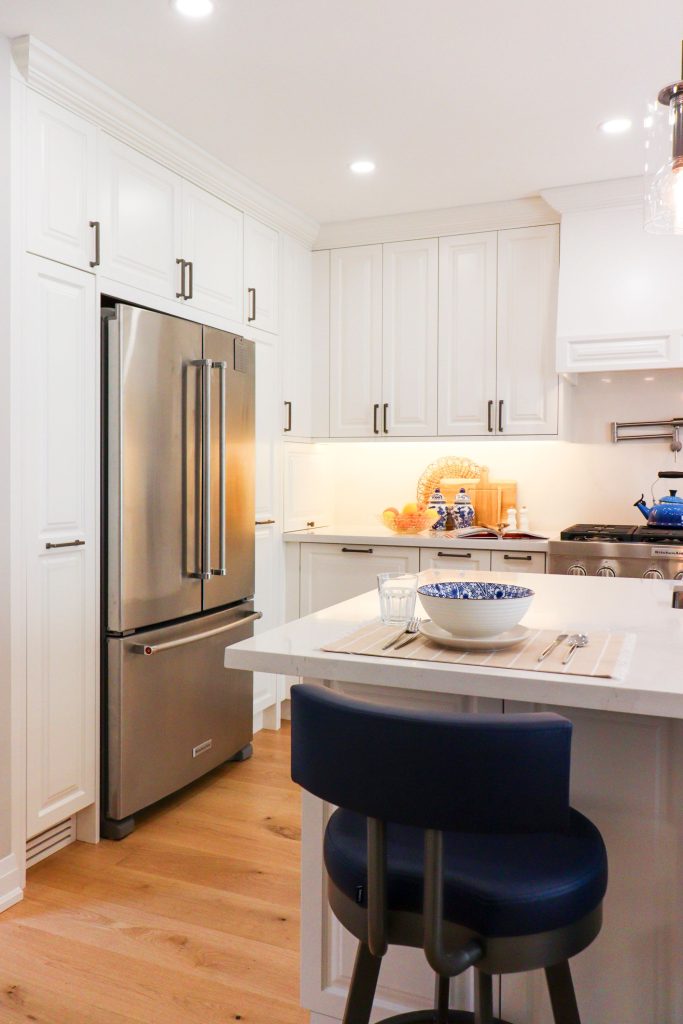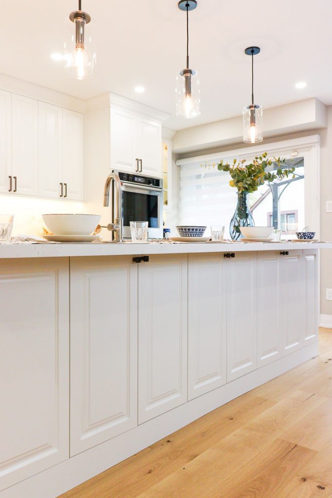 Project Hellensfield features an entire main floor renovation in Etobicoke, Ontario. This home got a brand new layout. The main structural wall was removed from the kitchen area to connect the dining room and kitchen space.